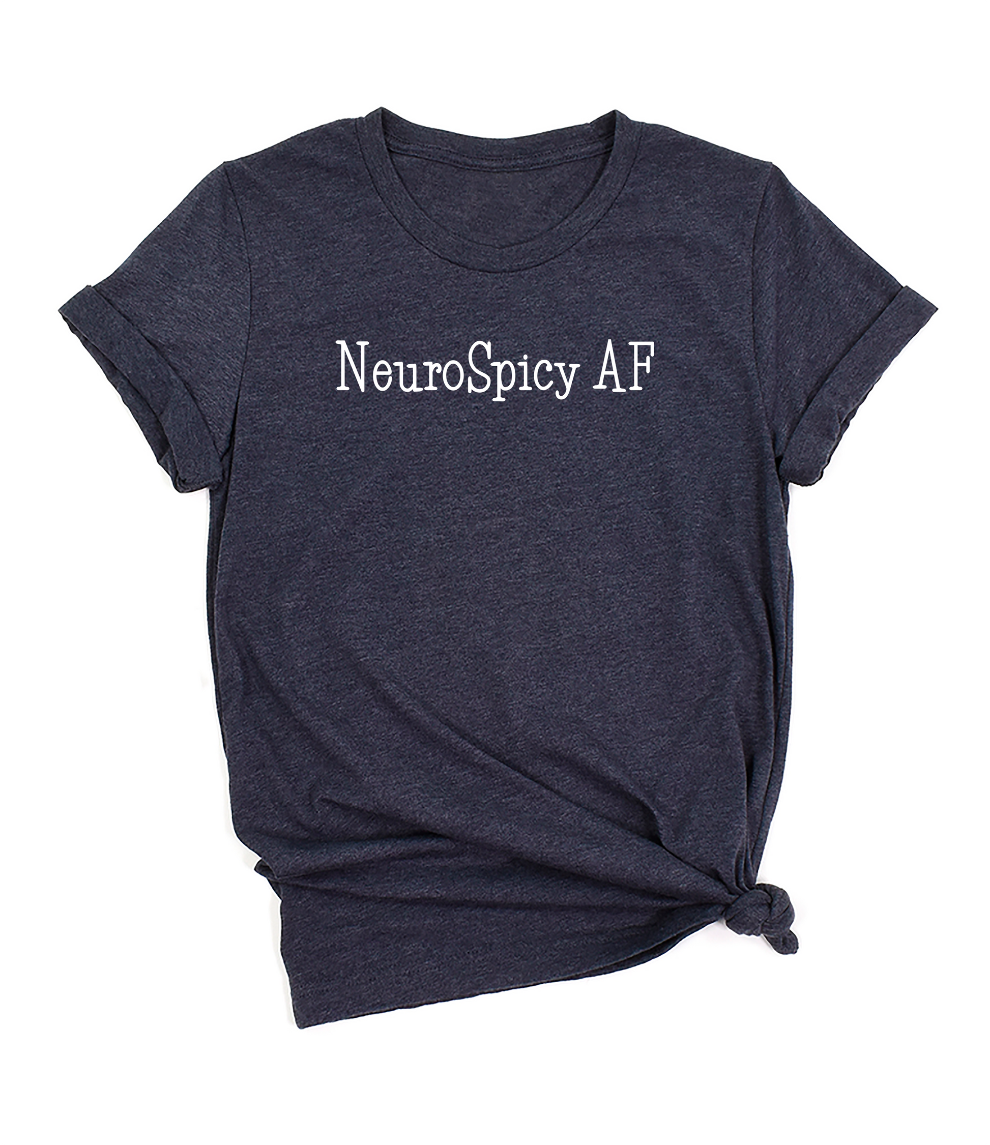 NeuroSpicy AF (white print) short sleeve t-shirt. Soft cozy t-shirt celebrating neurodiversity.